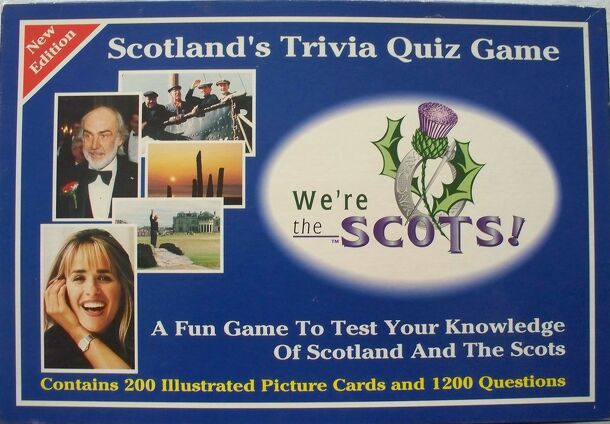From the box: "Scotland's Trivia Quiz Game. A Fun Game To Test Your Knowledge Of Scotland And The Scots." We're the Scots! can be played either by individuals competing against one another, or teams of players competing against one another. ... Play commences with the first questioner (the player on the immediate right of the starting player) drawing the...