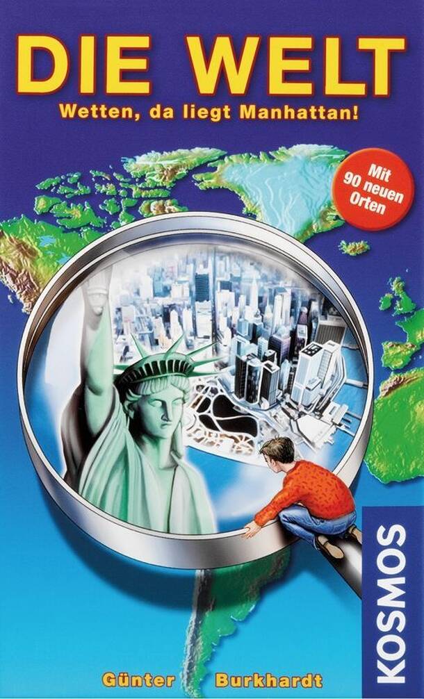 Die Welt: Wetten, da liegt Manhatten! features gameplay similar to Die Welt: Singapur, wo liegt das nur? (which is derived from Deutschland: Finden Sie Minden), with players trying to locate places or landmarks on a world map. To set up, players lay out game boards that feature land masses with no names on them. On a turn, players are confronted with a...