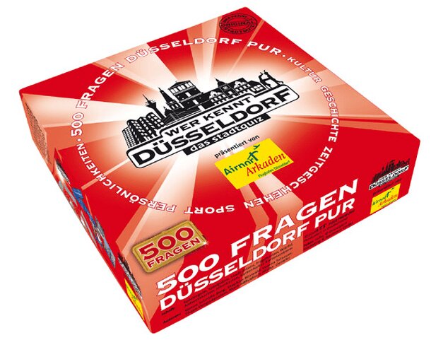 "Who knows Düsseldorf - The Original City Quiz" Do You know Yor city or region? With over 500 questions about Düsseldorf. The Quizmaster draws a card and asks a question. Plyayers bets correct answer with A/B/C/D-cards face-down or use their joker card. Correct answer scores points and player may continue answering. Wrong answer eliminates player from the...