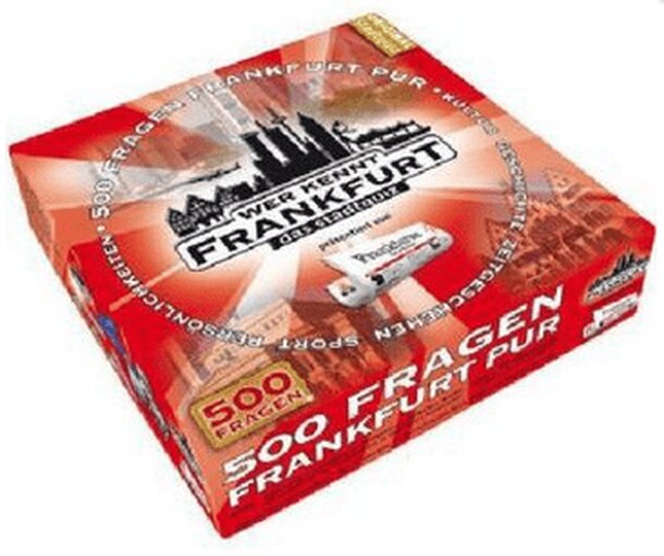 "Who knows Frankfurt - The Original City Quiz" Do You know Yor city or region? With over 500 questions about Frankfurt. The Quizmaster draws a card and asks a question. Plyayers bets correct answer with A/B/C/D-cards face-down or use their joker card. Correct answer scores points and player may continue answering. Wrong answer eliminates player from the...