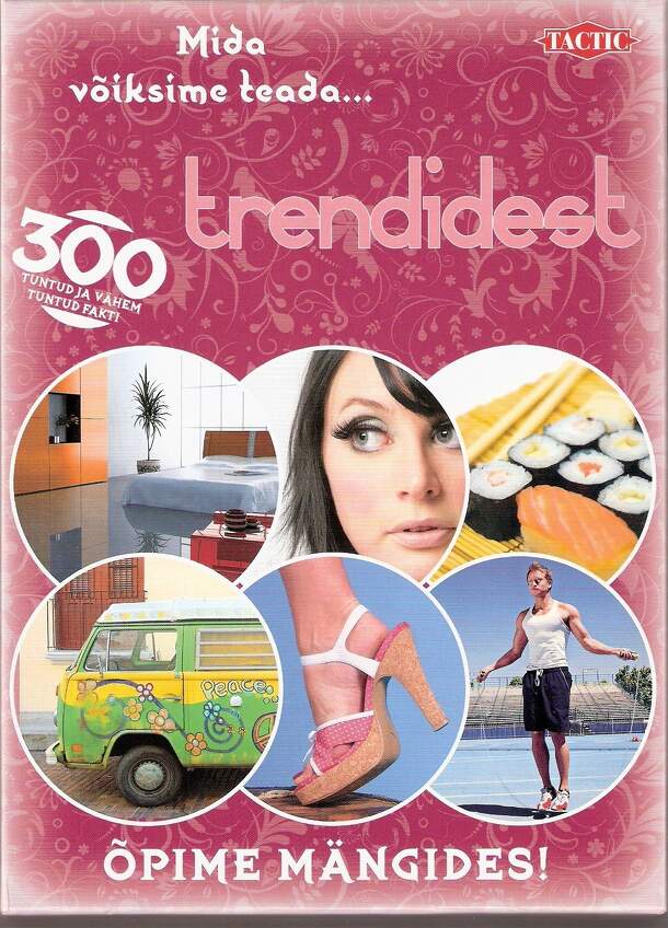 From the publisher: This game covers the whole scale from haute couture to everyday trends. Do you know which international fashion house uses the initials LV, or which animal appears on the Lamborghini logo? If you don’t, find out with What everyone should know about trends and lifestyles! On each turn players take one card and try to answer to the...