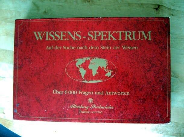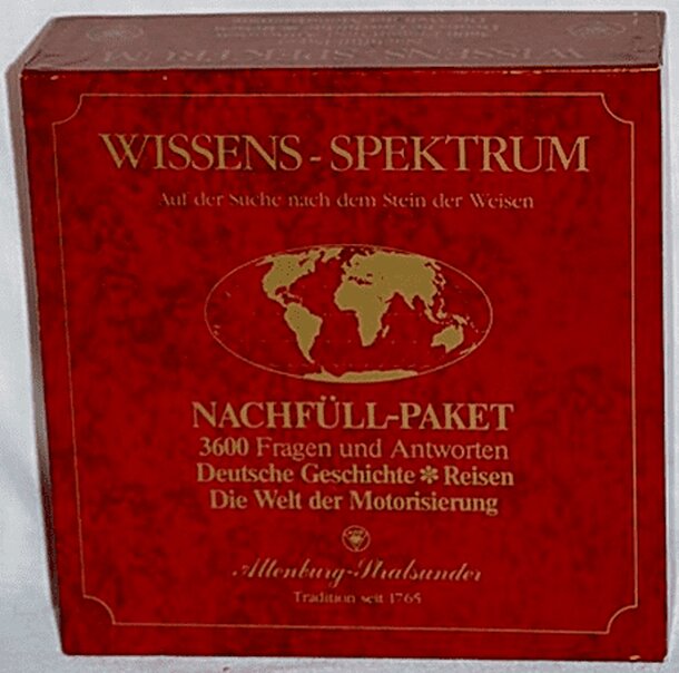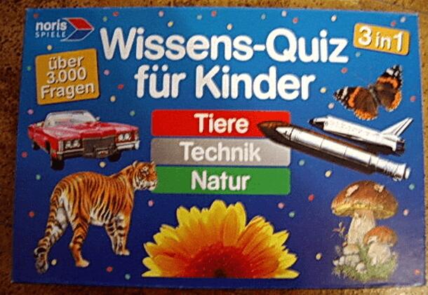 This learning/quiz game follows the usual scheme for quiz and trivia games: One stops his move on a colored spot and has to answer a question from that category. If the answer is correct, the player receives a knowledge chip in that color. The first player who has 8 chips in different colors, wins the game. On the 110 cards there are more than 1000...
