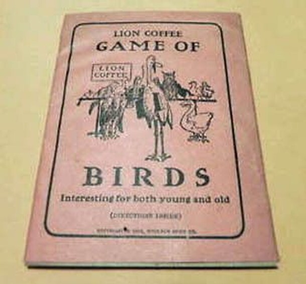 Birds was a promotional game distributed by the Woolson Spice Company for mailing in "Lions head cutouts" from Lions Coffee. In a turn, you draw the top card and give the top clue to the next player. If he knows the correct answer, he claims the card. If he gives the wrong answer or passes, the next clue is given to the player on his left, who will claim...