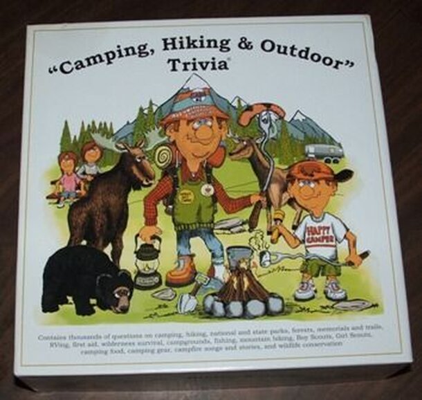 From the publisher's website: "The Award winning CAMP Travel Edition is very compact and mobile, with a unique wood design. Up to 4 multi-level players, and has fun "setback" and "move forward" features. All new outdoor trivia cards, with vibrant full color images, includes content highlighting all 50 states. Game includes: 50 question cards, 4 game...