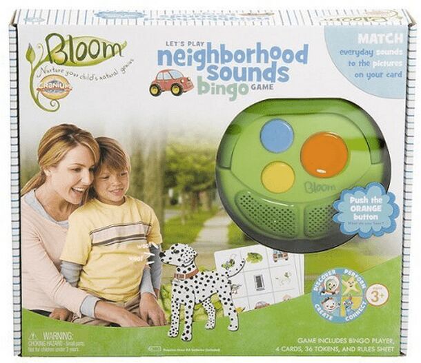A bird tweet tweets and Dad’s lawn mower vrooms. Explore the sounds of your neighborhood with this new way to play bingo together. Listen to the sounds on your bingo player. What do you hear? A tricycle bell? A puppy’s bark? Find the picture match on your bingo card. There’s a symphony of sounds all around -- the perfect soundtrack for a play-and-share...