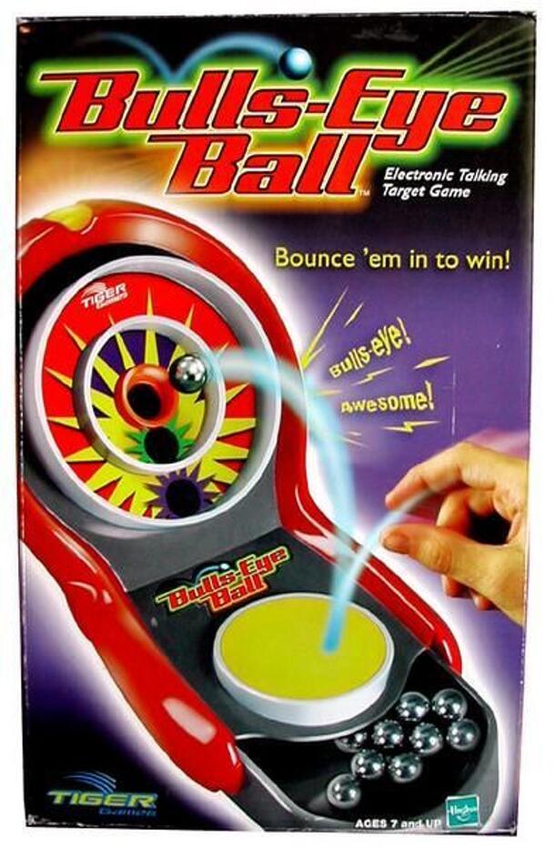 A scaled down version of Skeeball. Players bounce balls off a mini-trampoline and try to get them in the target circles. An electronic announcer keeps score. Three games are included: 30-Second Blitz- Score as many points as you can in 30 seconds 25-point Rush- Score 25 points as quickly as possible Bulls-eye Ace- See how many times you can score a...