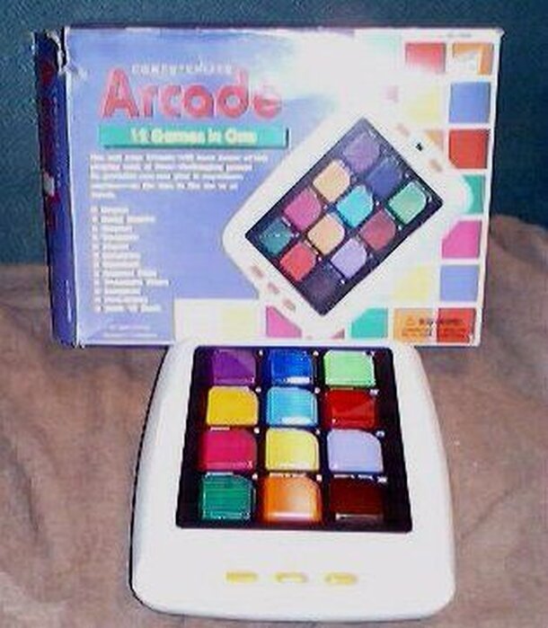 This arcade is made up of 12 different games; 1. SONG WRITER: Game memorizes notes that you input and then plays them back. 2. ORGAN: Play the notes on the arcade like an organ. 3. REPEAT: Play the notes in the order that the Arcade plays them. 4. TORPEDO: Try to sink the enemy submarine. 5. TAG-IT: Try to press the buttons as fast as you can after they...