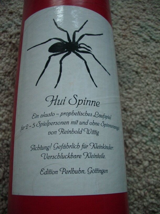 This is a game of "acoustic prophesy" by the ever-odd Reinhold Wittig. The game uses a spider radio as a semi-random number generator for play. I wish I could tell you more, but my spider radio has never worked. Sigh. From Funagain Games: The spider radio tunes to a random radio channel. Predict whether the broadcast will be speaking or music. If you're...