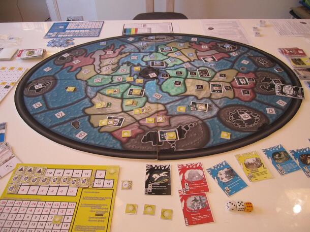 Description from the rules: There is a war brewing in the heavens! After a particularly nasty fight, Sarastro and the Queen of the Night are fighting over custody of their daughter, Pamina. Two players take on the rolls of Sarastro and the Queen of the Night, each trying to either move Pamina to their respective strongholds, or to have their respective...