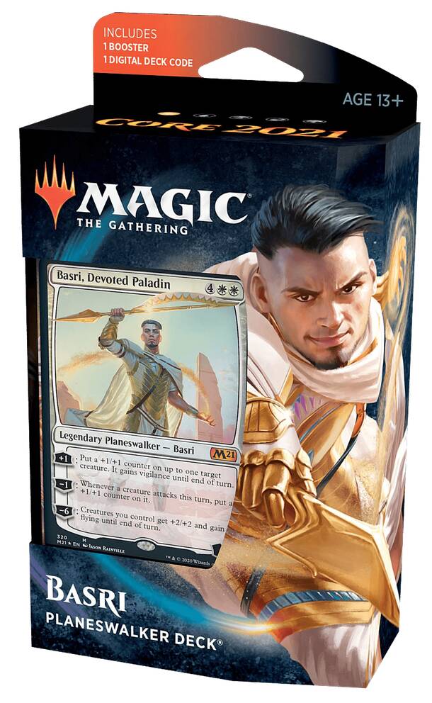 Planeswalker Decks familiarize players who are interested in Magic with basic strategy, plus the games setting, characters, and mechanics of the latest set. Each deck comes with a foil Planeswalker card not found anywhere else. The entire multiverse has opened up before Basri Ket, ready to test to his unshakeable ideals. Spread the hurt by permanently...