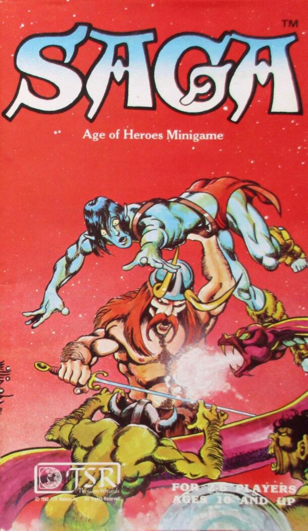 Part of TSR's minigame series. From the rulebook... "Saga minigame recreates a mythical time period occuring sometime after the fall of Rome - the age of heroes and vikings! Each player takes a heroic figure and attempts to perform deeds that will generate enough glory to ensure that the hero's memory will live in the sagas composed after his or her death....