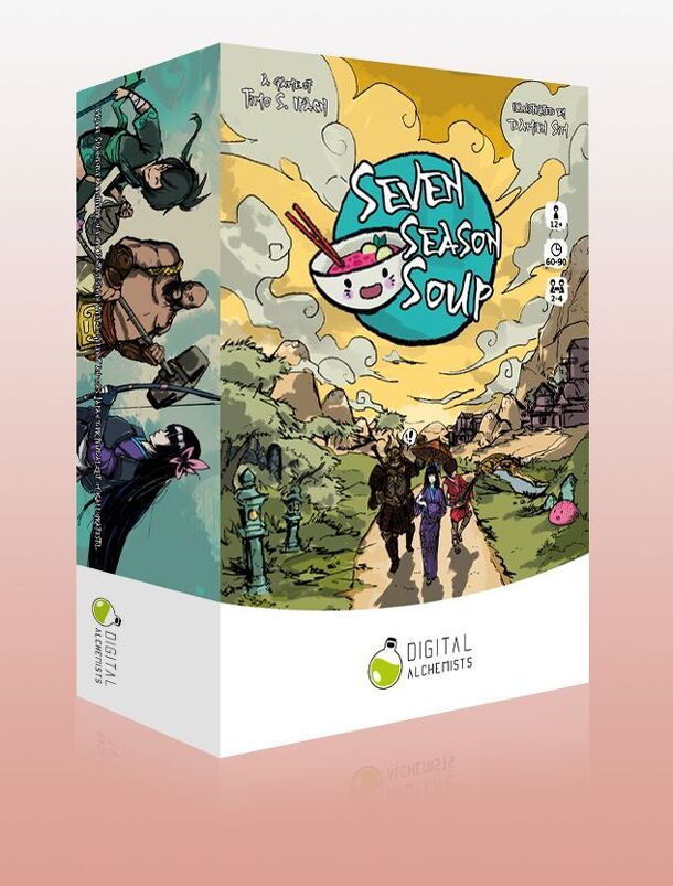 Seven Season Soup takes place in a fantasy world inspired by the Japanese feudal era and Asian mythology. In the game, players encounter fantastic creatures like the towering Daikon, a radish demon, or Slime, an adorable yet dangerous pink blob. The art is colorful and is reminiscent of a colored version of Japanese calligraphy. The players compete in the...