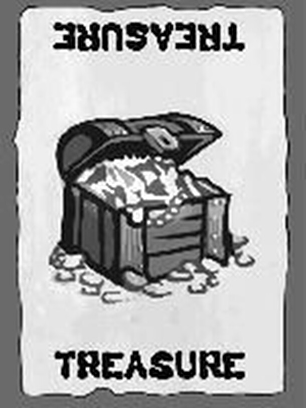 2-player game, but could be stressed to 3 or 4 players. The 98 cards of the game are shuffled and dealt into 7 piles face down between the players then the top card of each pile is turned face up. The object of the game is to dig through the piles and collect most of the seven treasures. The cards are divided into items and obstacles. On each of your turn...