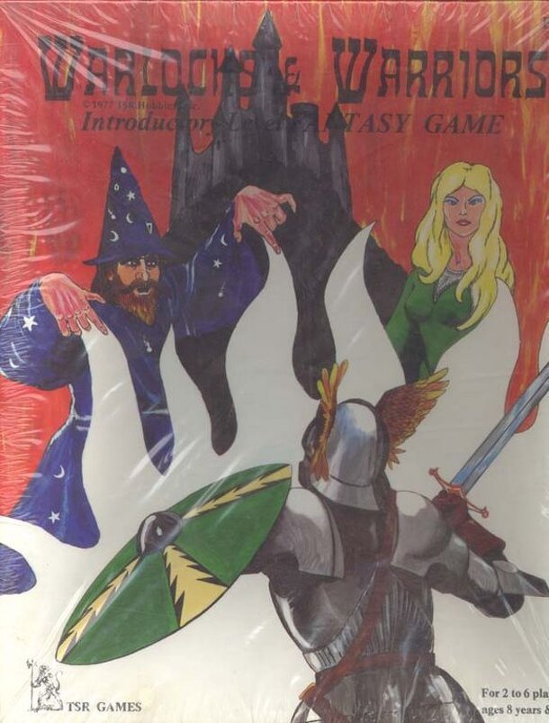 "Introductory" fantasy board game in which players choose to be either a warlock or a warrior, start off on the board's movement track, cast spells at each other (which consist only of "move an opponent a certain number of spaces"), and try to be the first to conduct the princess to her castle at the end of the track despite the numerous perils along the...