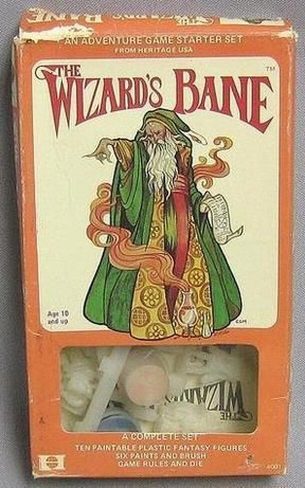 Box blurb: "ADVENTURE GAME STARTER SETS are a complete introduction to the hobby of Fantasy Adventure Gaming, all in one box. Each ADVENTURE GAME STARTER SET contains ten paintable plastic action figures in the standard 25mm size, a set of non-toxic water-based paints with instructions and brush, and a complete set of fast, playable rules for playing out...