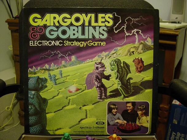 Bonus game included with the VHS and Laser Disc release of Gargoyles the Movie: The Heroes Awaken (a compilation of the first five episodes). Components included: game board, "Building" cards, Demona "Wild" cards, Elisa "Badge" cards, spinner (1, 2, 3), and four player tokens (Goliath, Brooklyn, Lexington, Broadway). Players were instructed to keep the...