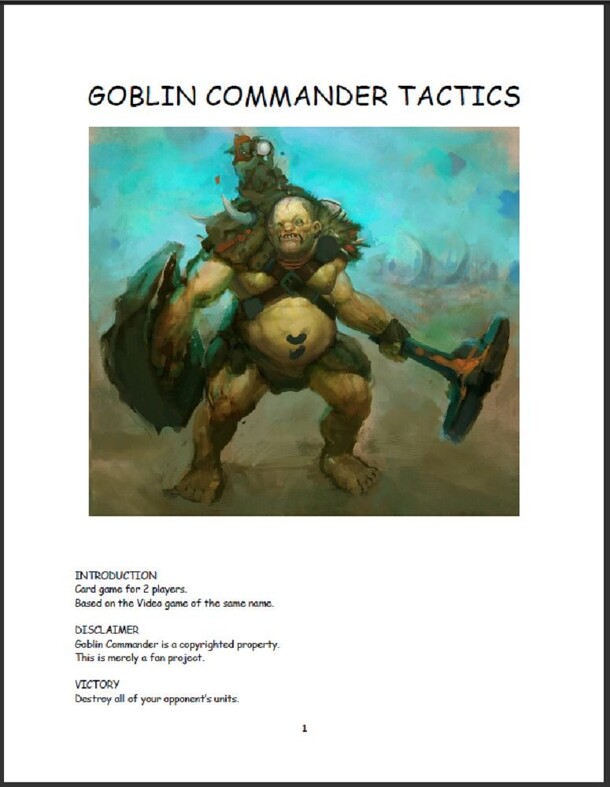 Goblin is a fantasy game of raiding and plunder for two players. Each player takes a turn at playing the Goblin King, leading raiders into the peaceful valley, pillaging and burning. The other player maneuvers the farmers and the Baron's troops in a desperate attempt to stave off the raids. The player who amasses the greatest amount of plunder as Goblin...