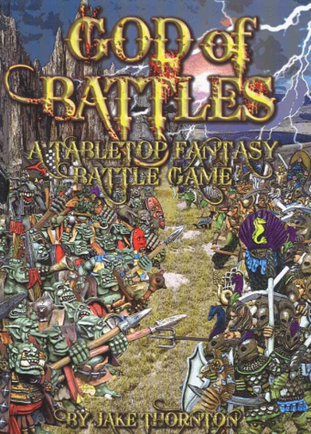 God of Battles is mass fantasy combat system set in the world of Aren and designed for use with 28mm miniatures. Players select an army from one of ten army lists, ranging from fantasy staples such as Dwarfs and Orcs, to more unusual races such as the insectoid T'lekkan and the Sea Elves. Depending on the size of the game and the choice of army, players...