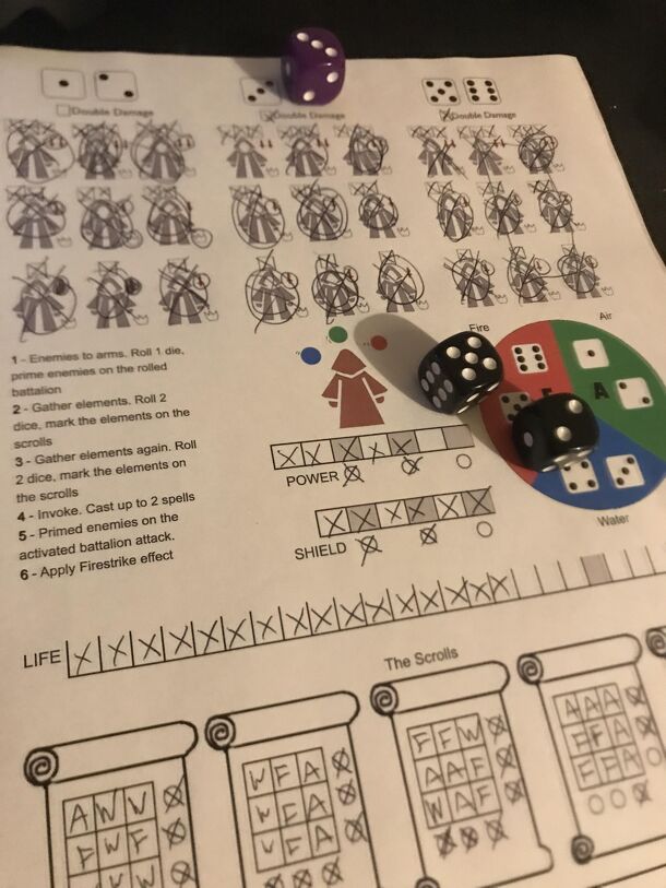 The legion is coming upon the Land of Ibaur. You - The Grand Magus - are the last hope of the people. Use the arcane elements to craft and cast magic spells upon the enemy before they do the same to you. The player rolls dice to gather elements (Fire, Air, Water). These can combined in different ways to cast different offensive and defensive spells. The...