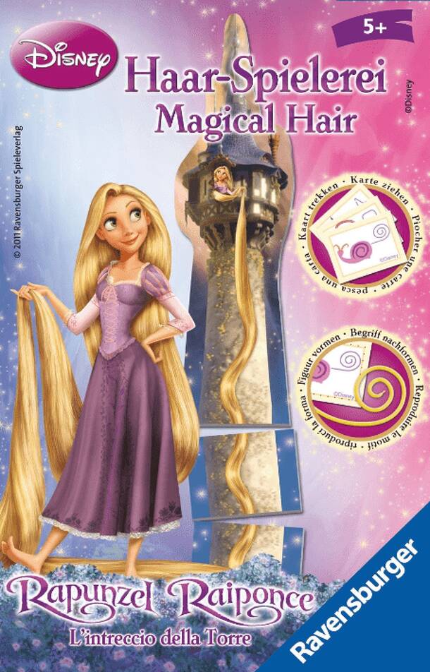 Rapunzel is coming home to her tower and wants to tell about her adventures - if she has forgotten the word for something she uses her magical hair to draw the item. Each player receives a tower. In your turn you look at a hair tile and use the hair string to lay out the contours of the item. The others guess, who guesses correctly receives the tile and...