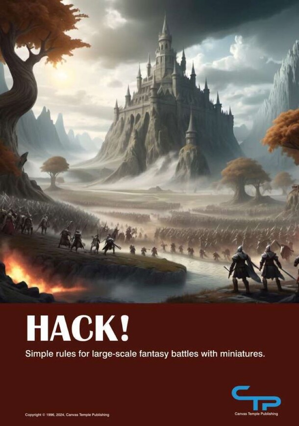HACK! is a set of rules for large armies of fantasy miniatures that is easy to learn and simple to play. Completely miniature agnostic, hours of enjoyment await you as you journey into the fantasy regions and struggle for victory against powerful adversaries. HACK! is an open-ended system in which you can create scenarios for any situation, from any...