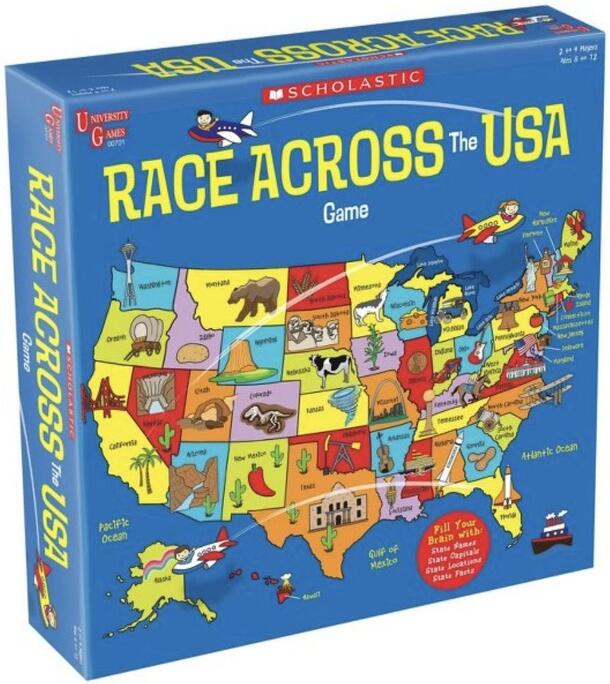 From the publisher: How well do you know the states? Well, you're about to learn all about American geography and culture in a really fun way! With questions designed by grade level, children from 3rd grade - 7th grade can all play this game together on a level playing field. Players move around the map game board and answer questions about cities, states...