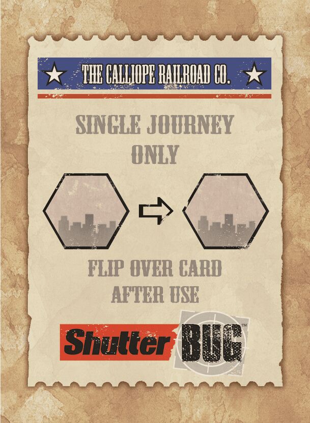 When using the ShutterBug: Train Tickets mini-expansion, during set-up, all players receive one train ticket card and place it face up in front of them. Once per game during their turn, while their pawn is in a city, a player may flip their train ticket to the VOID side to move their pawn to any other city as a free action. Once used, the card cannot be...