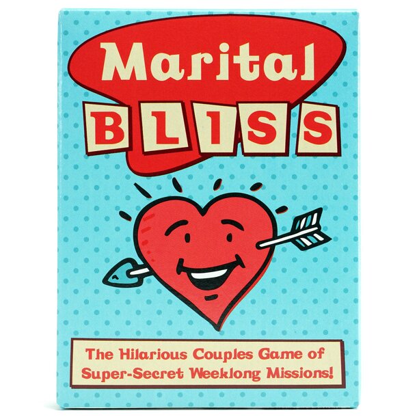Re-released with updates for 2023: 69 all-new images and 10 new mission and reward cards. It's also now printed in the USA on certified paper and card stock from responsibly managed, sustainable forests. A free print-and-play version is available on the company's website. At the start of the two-player card game Marital Bliss, each player draws seven...