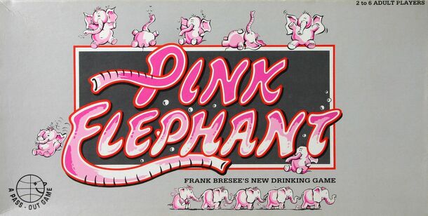 PINK ELEPHANT is an adults only drinking game which is, I quote, "Not intended for use with alcoholic beverages"! From the box: "Now you can get your parties really buzzing with this outrageous drinking game for 2-6 "sober" adult girls and boys. Can you stagger round the board collecting Pink Elephants and doing the very, very silly things the cards...