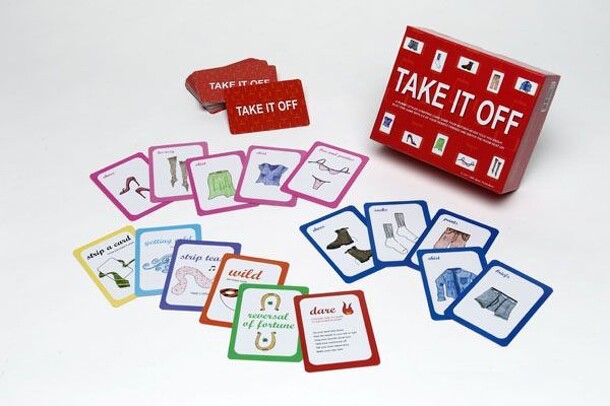 This is a game of Rummy with with an adult twist to it. Each time one player collects and lays a complete outfit of five clothing cards down, The Others have to ("Take It off") Take off one item of their clothing. Here's the twist, If you're behind in the game, hope you draw a "Getting Cold" card so you can put a clothing item back on. Also there are...