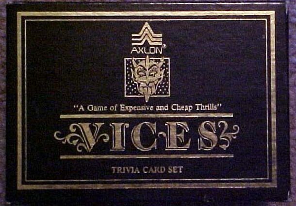 From the box: This trivia card set is designed to be played as a stand alone game, or as a companion to such related games as Avalon Hill's Game of Trivia and Selchow & Richter's Trivial Pursuit. Contains six categories Drinking & Gluttony Altered States Gambling & Gaming Saints & Sinners Passions & Perversions Cheap Thrills Age - Adult 3000 Questions...
