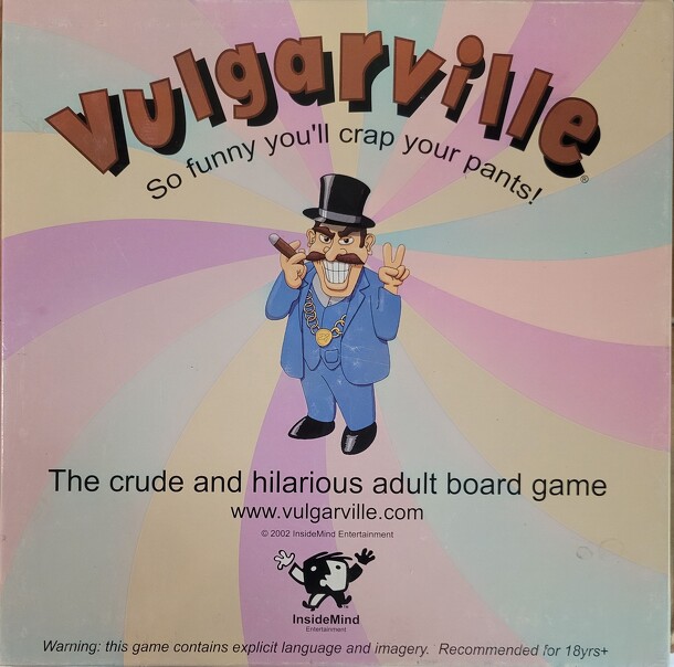 Filled with naughty cartoons and dirty jokes, this wild party game will leave you in hysterics! In Vulgarville, "worst is first". Your goal is to become the town's Mayor. This means bribing, stealing and back stabbing as you race to accumulate votes. Meet the hilarious town patrons, such as Chuck Chunks and Skidmark Rose. These patrons will vote for you...