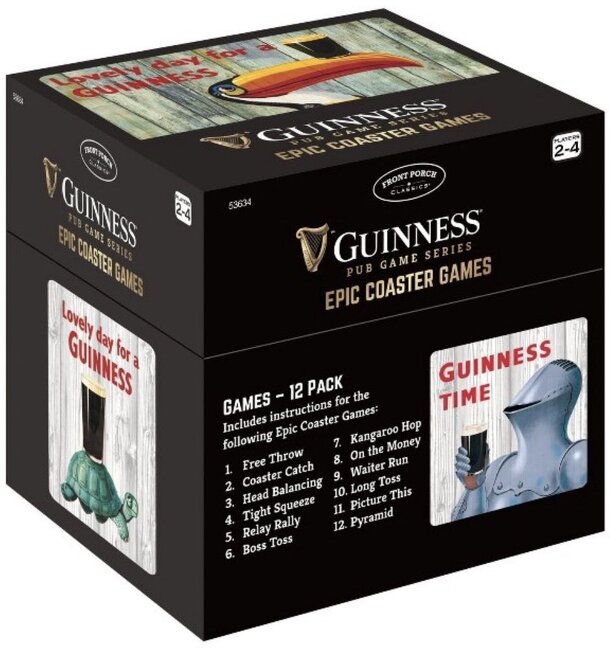 Imagine your favorite Guinness posters. Then, imagine them in action playing some of your favorite pub games! 40 actual Guinness coasters, bearing more than 100 years of Guinness artwork, allow fans to celebrate their favorite stout in the most appropriate manner possible. Our instruction booklet contains rules for 12 different games – you can also make up...