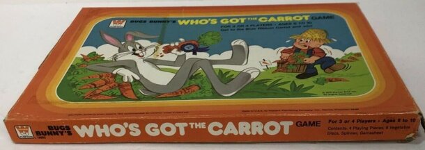 Bugs Bunny is an astronaut on a mission to deliver urgently needed carrots to an orbiting space station. The object is to be the first player to deliver four carrots to their matching space station. Players spin and move their pawn from their planet with up to 3 carrots of cargo at a time to the space station with the matching color. Players may move in...