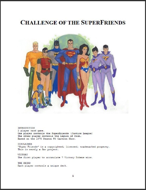 Based on the 1978 season of the Superfriends TV cartoon. One player controls the Superfriends (Justice League), the other player controls the Legion of Doom. The game uses a custom card deck for each player. Each deck includes Character Cards and Plot Cards. To win a hand a player must play Plot and Character cards having a higher total Power Value than...