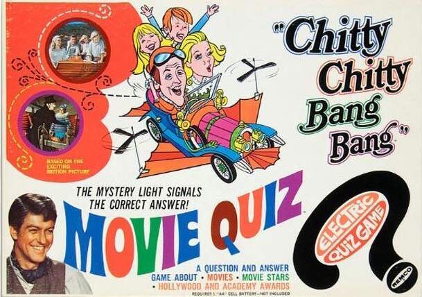 This 1968 card game is visually a spin-off from the hit movie, but the mechanism is essentially the same as Crazy Eights. This deck has 44 cards in four suits, each numbering 1 to 11. Each number has an illustration of a character, with the 8s being Chitty Chitty Bang Bang the car. Each player is dealt a hand of five cards. The rest are face down as a draw...
