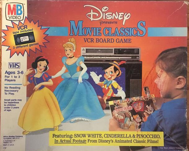 Remember Snow White, Pinocchio, and Cinderella? Their adventures enchanted you when you were a child. Now with the Disney Movie Classics VCR board game, your child meets the same delightful characters but in a whole new way! Actual footage from the Disney movies is combined with three fun matching games. Just insert the tape into your VCR and the adventure...