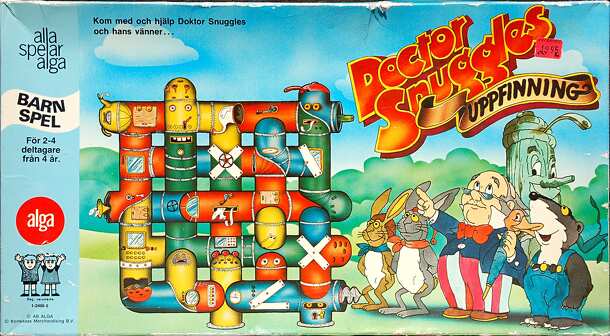Dobus: de clownsneusjes (Dobus: the clown noses) is a childrens game in which children learn to recognize shapes based on a Belgium TV series. The game starts with 44 tiles faced down on the table. Each turn a player picks a tile. If the picture on the card has the same shape (e.g. a square) as depicted on the player's clown card the player keeps the card....