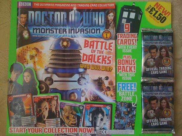 A magazine that comes with collectible trading cards themed mostly on the new Doctor Who adventures, with some special cards recalling the earlier TV series. Each issue of DWMI contains a new game using the cards, which have a range of stats unique to that card. The first issue contains the games, Stat Attack, Survivor and Alien Attack, and playmats for...