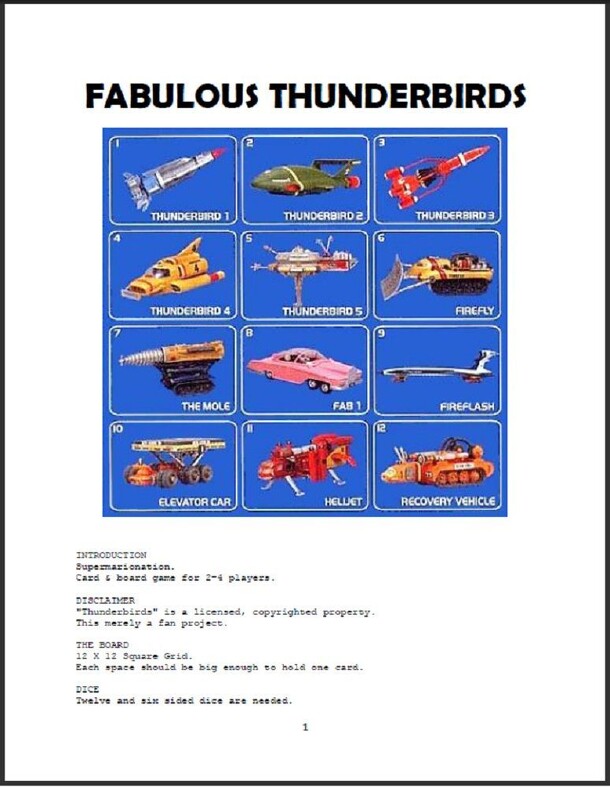 A game based on the Thunderbirds television show. The players travel from their Secret Bases to respond to various emergencies determined by card draw. Each emergency requires a certain assortment of vehicles to resolve. All players have an identical assortment of vehicles to work with: "Thunderbird 1" through "Thunderbird 5", and "FAB 1." The object of...