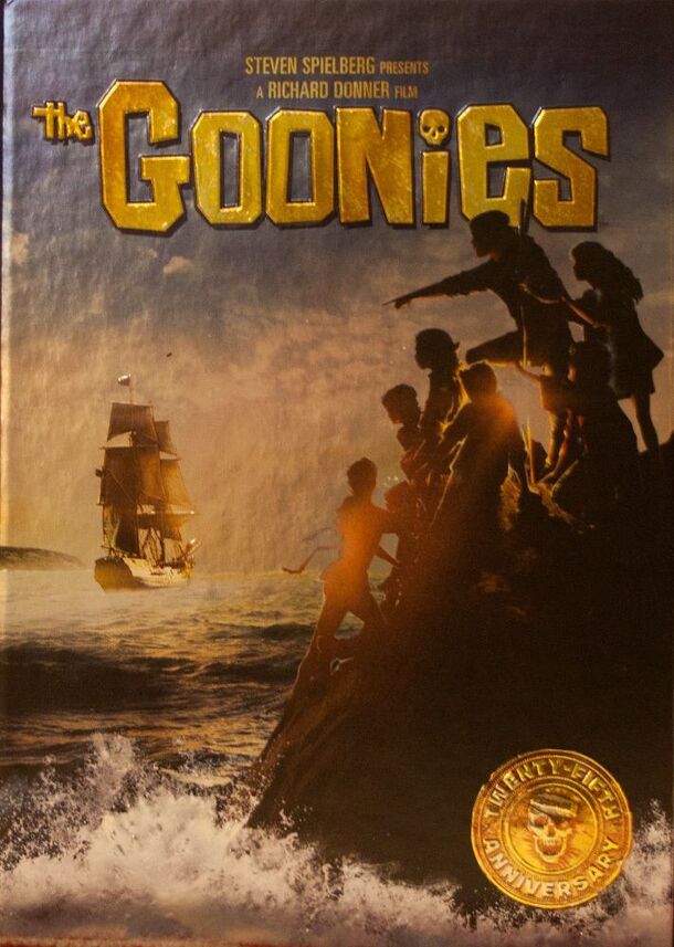 From the Wired.Com review of The Goonies 25th Anniversary Edition DVD Set: ".... the set’s true treasure - a special Goonies-themed board game. The bulk of the box set’s real estate is devoted to this game, and immediately upon cracking open the shrink wrap you are taken by its diminutive size. Still, if The Goonies taught us anything it’s that size...