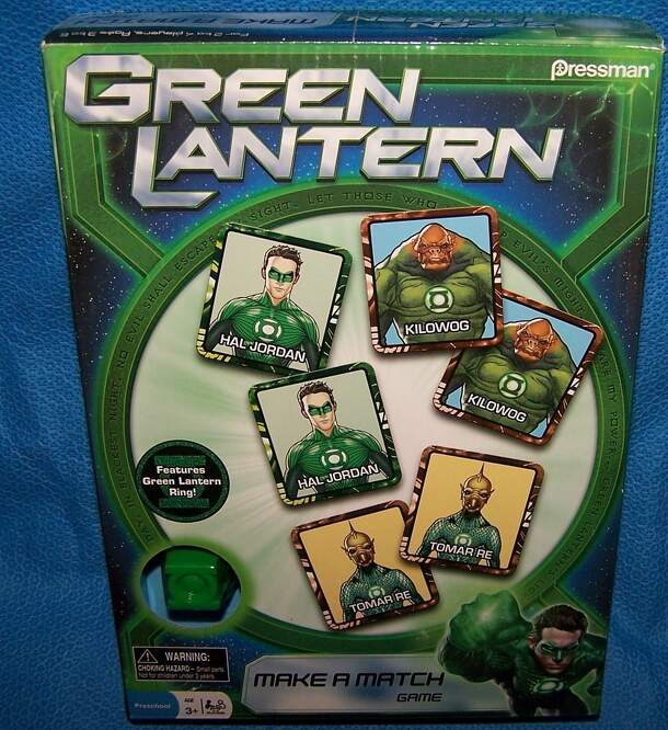 Hal Jordan, Sinestro, Abin Sur and other characters in the the Green Lantern world are hiding. On your turn, pick any two cards. If they match, you get to keep them. Find a pair of the special Green Lantern ring cards and you get to take the ring. There are several of those in the game, so it moves from player to player. Be the one who has it at the end of...