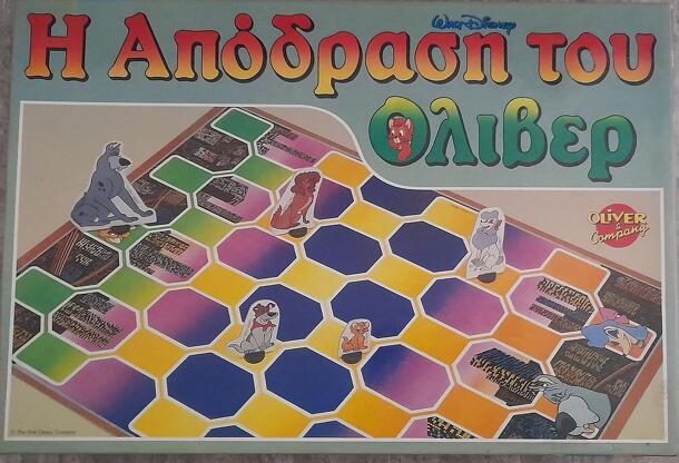 A board game for two players themed after Disney movie Oliver & Company manufactured and released in Greece my ΜΙΚΑ toy company in the late 80s - early 90s. To start the game, one player takes Oliver's pawn and the other takes the remaining pawns (Rita, Dodger, Einstein, and Georgette). Players place their pieces on the corresponding squares of the board...