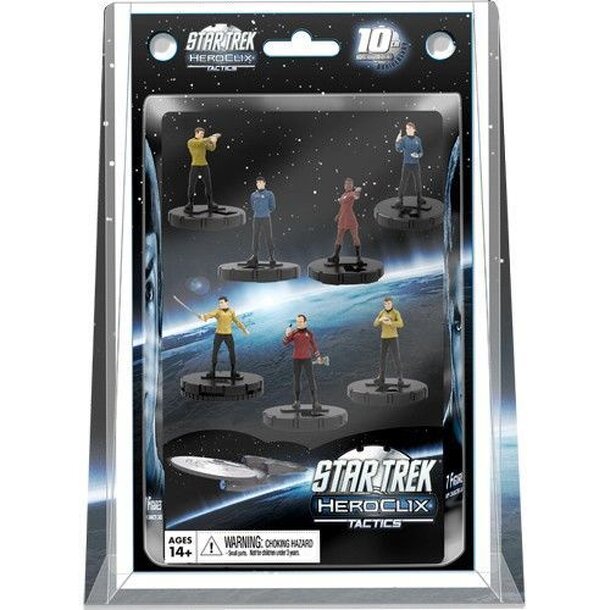 From the publisher: Characters from the hit movie, Star Trek, beam down to your HeroClix game! Completely compatible with the core HeroClix Rules system, The Star Trek HeroClix: Tactics Away Team 7-Pack includes pre-painted figures of Kirk, Spock, McCoy, Uhura, Scotty, Sulu, and Chekov, each incorporating a dual-dial design to provide 14 different playable...