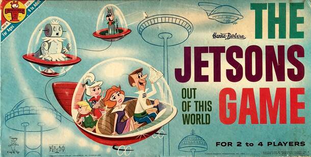 This 1962 Transogram Game is a simple roll and move game which also featured the playing of cards which were accumulated by landing on particular spots on the board. Game included playing pieces for George Jetson who worked for Spacely Space Sprockets, his wife Jane Jetson, teenage daughter Judy and preteen son Elroy, the housekeeper Rosie the Robot and...