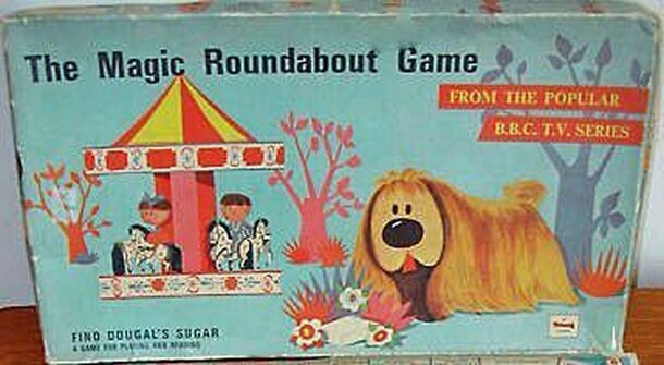 Contents 1 Playing Board. 6 Dougal Playing Pieces. 1 Dice. Instructions Are Printed on Inner Box Lid. Game based on characters from the BBC children's series, in particular, Dougal the dog. Each player chooses a Dougal figure. The game is the story of Dougal looking for his sugar. The story starts at space Number 1 on the board and finishes at Number 63....