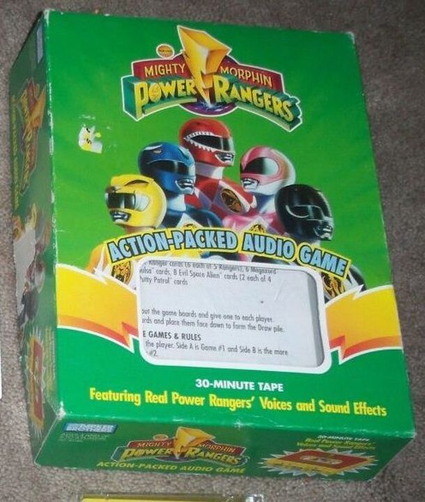 This is actually 2 games that use an audio cassette to direct the game play. Game #2 (Side B on the tape) is a more complex version of Game #1 (Side A on the tape). To start each player takes a board that depicts all 5 Teen Heroes. The tape will tell you when to draw cards and when to battle. The object is to cover your Heroes with their Power Ranger...