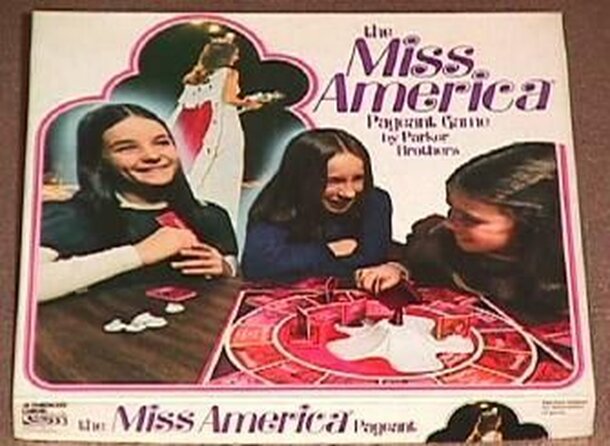 This game recreates The Miss America Pageant with players competing in the Swimsuit, Talent, Personality and Evening Gown competitions. The game uses a spinner shaped to look like a television camera. On your turn, you spin the spinner and advance the number of spaces indicated. If you land on a competition space, you draw a card that tells you what score...