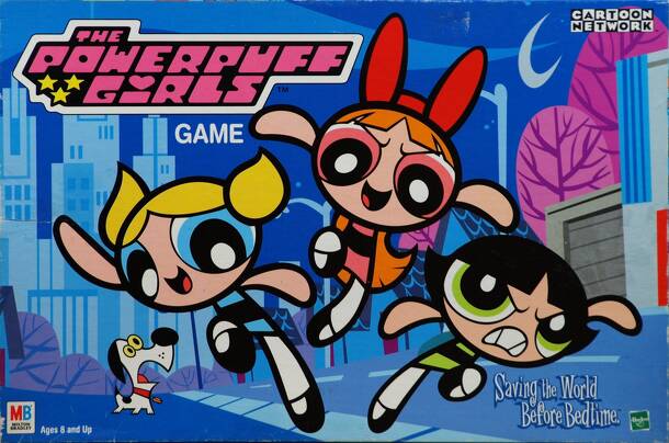 Players all control the Powerpuff Girls on their turns via a neat card mechanism: Cards are selected and revealed at the same time, but enacted according to times printed on them. It basically comes down to wandering about the board, revealing villain tiles and battling them with the Powerpuff Girls with the goal of being the first player to capture 4...