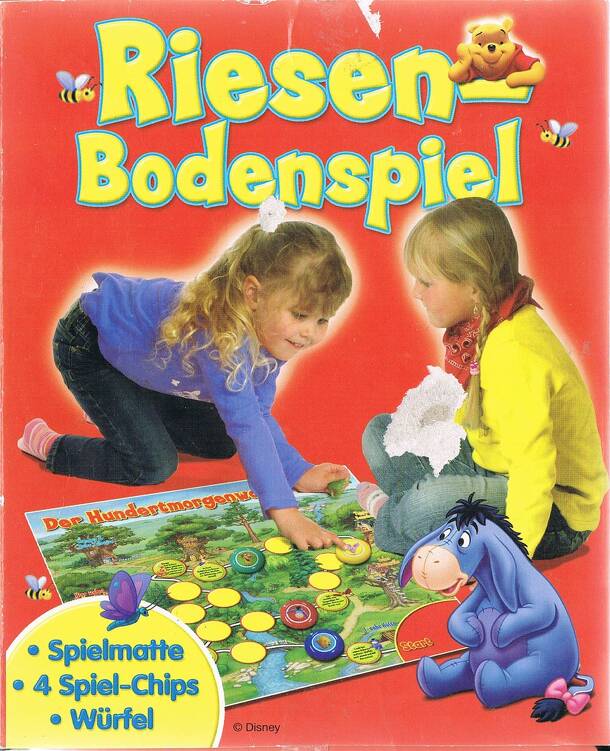 Very simple board game for the under fives (with supervision). The board is very large and made of some sort of synthetic plastic. It folds out like a piece of cloth to give it it's size. The board is a track, running from the Start to end at Winnie the Pooh's house. Dice controls movement and special squares (there aren't many as it is intended for the...